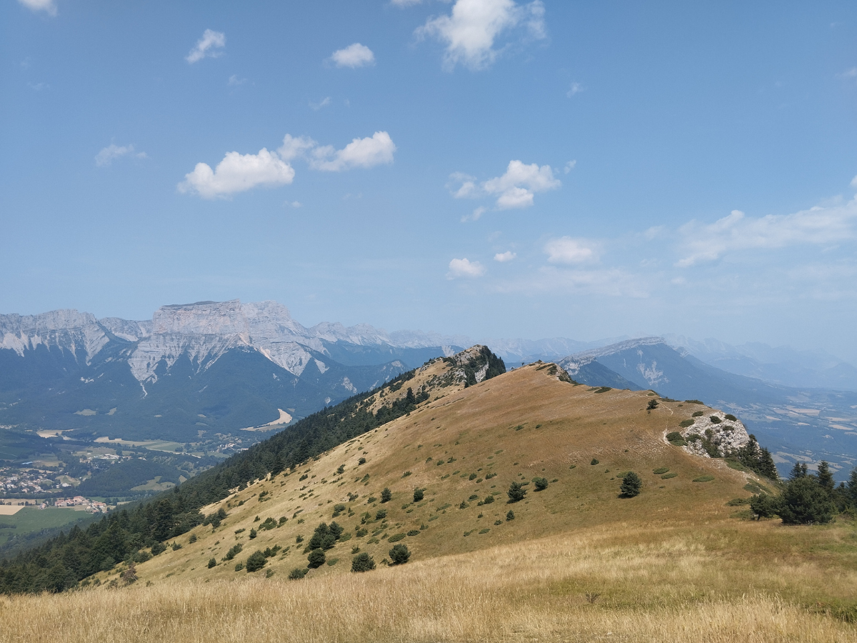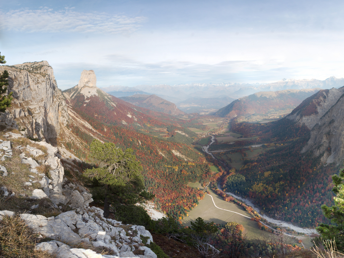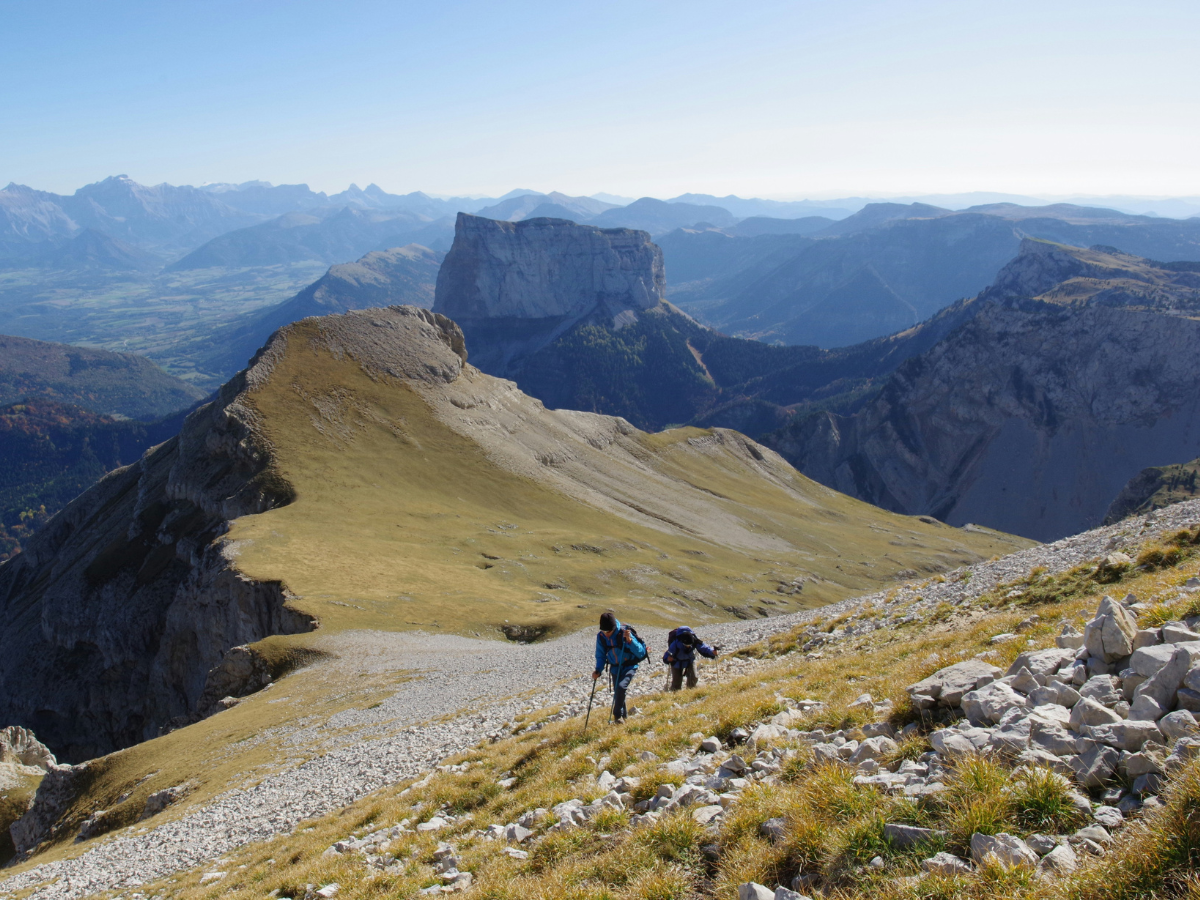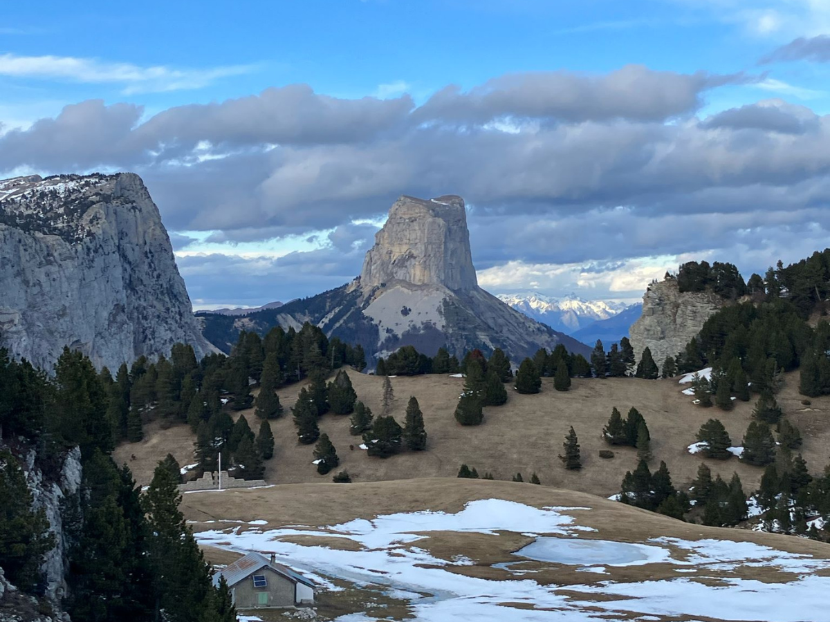 Dès l’après-midi, départ pour une première randonnée sur les sentiers alentours. À peine quelques minutes de marche suffisent pour que le Mont Aiguille s’impose dans le paysage — une apparition qui ne vous quittera plus de tout le séjour.