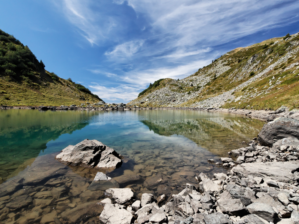 Le massif de Belledonne compte de nombreux lacs d’altitude nichés dans des cirques minéraux. Ces lacs deviennent des spots de dessin privilégiés : reflets, transparence de l’eau, roches granitiques, flore lacustre. Un terrain de jeu exceptionnel pour travailler l’aquarelle, la perspective et la composition.