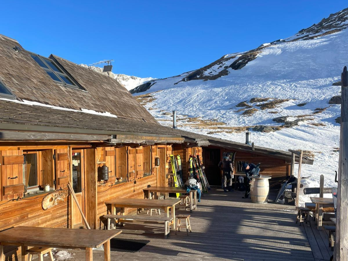 Matinée – Randonnée à ski : Petit-déjeuner au refuge face aux sommets. Puis départ pour le mini-raid : le guide choisit l’itinéraire selon le niveau du groupe et les conditions. Montée possible jusqu’à 700m de dénivelé positif supplémentaire, à travers des paysages alpins grandioses. Déjeuner picnic en altitude avec vue imprenable.